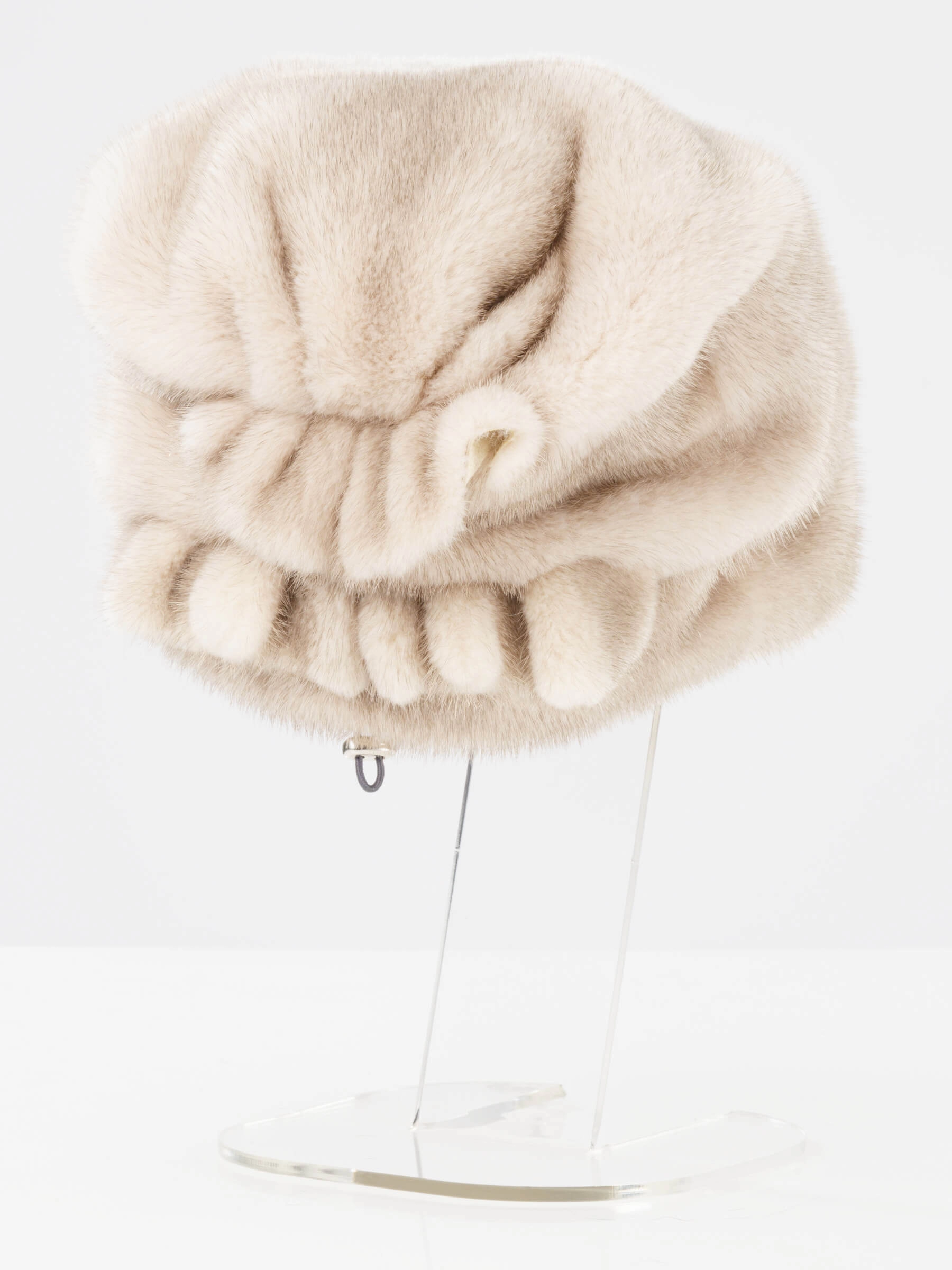 Шапка изготовлена из натурального меха норки удивительного оттенка, когда вроде бы основной цвет меха один, светлый, но при этом он переливается совершенно неожиданным для такой подпуши сероватым или голубоватым оттенком, меняя цвет, играя оттенками в зависимости от освещения. Модель имеет небольшой объем, представляет собой гармоничное сочетание комфорта и уюта.