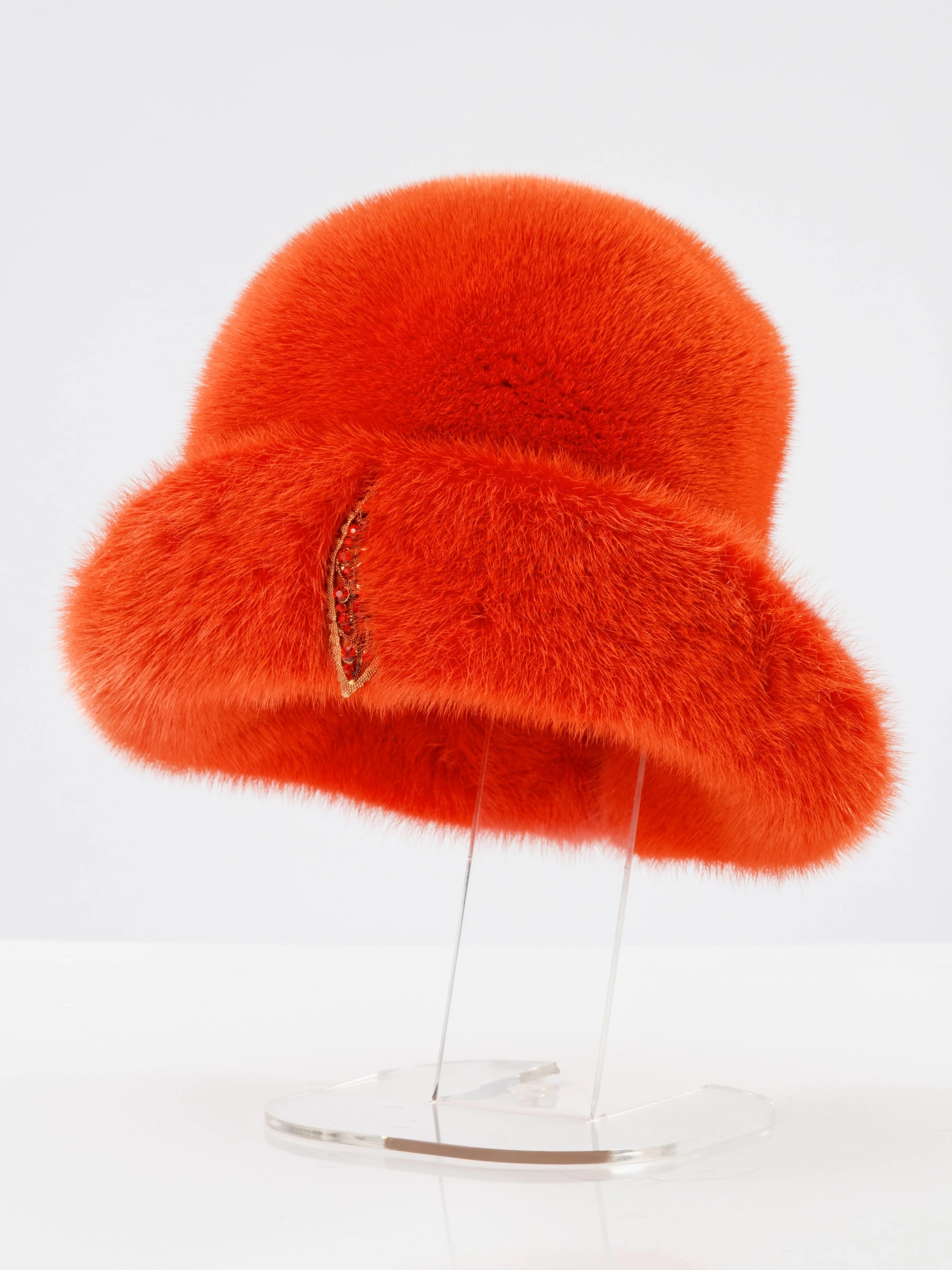 Товар головной убор из меха норки женский шармель, красный, размер 58, артикул 50870 выполнен из норка крашенной. Рассчитан на сезон: зима.