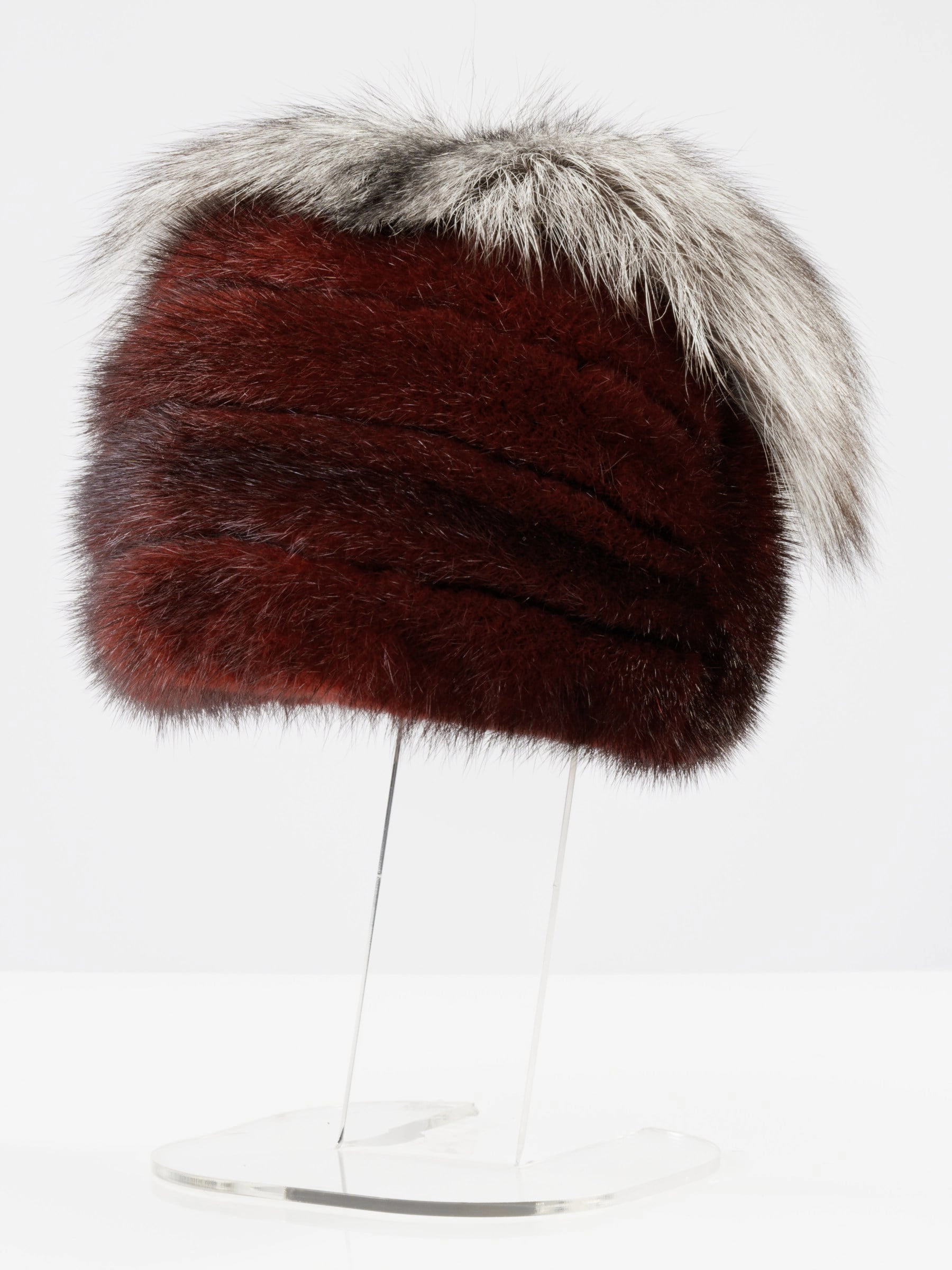 Товар головной убор из меха норки женский спиралька, бордовый, размер 58, артикул 50760 выполнен из норка крашенной. Рассчитан на сезон: осень-зима.